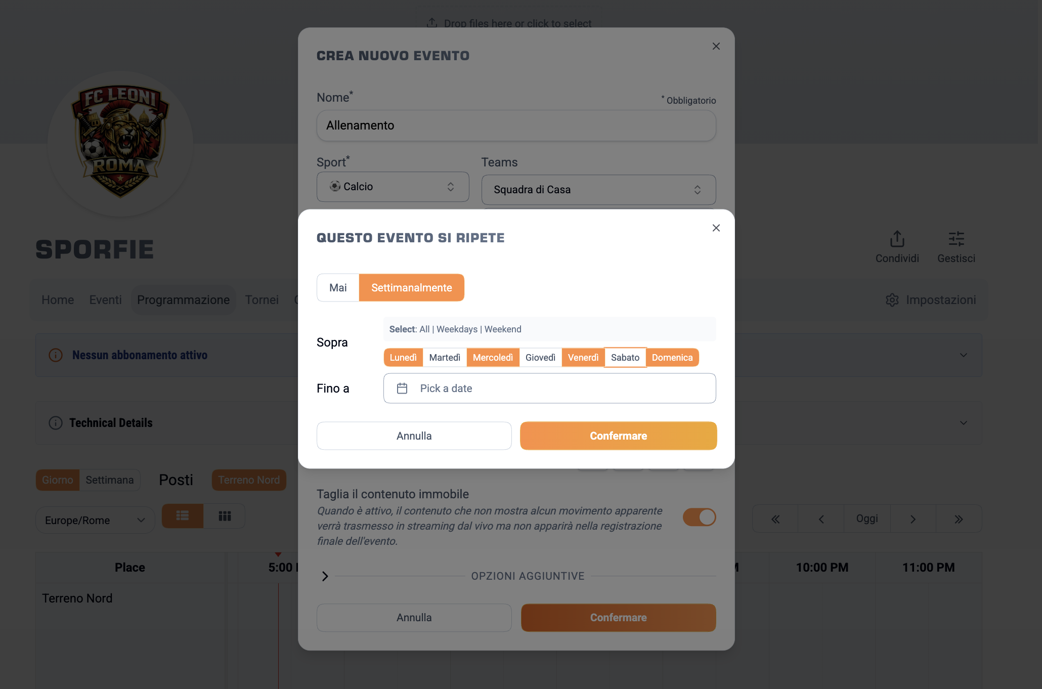 Scheduled events are the starting point for all other Sporfie features: live streaming, highlights, and more.