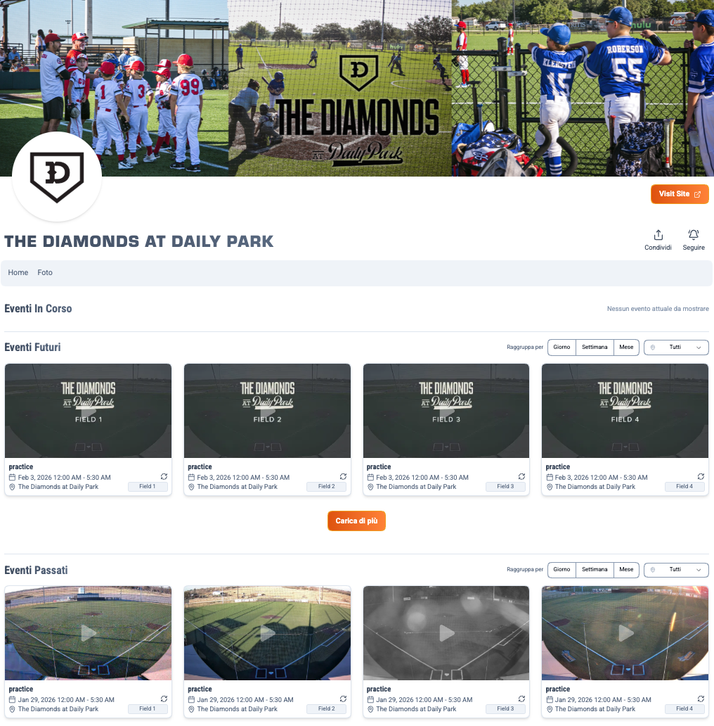 Offer clients dedicated pages where match recordings from their fields are collected.